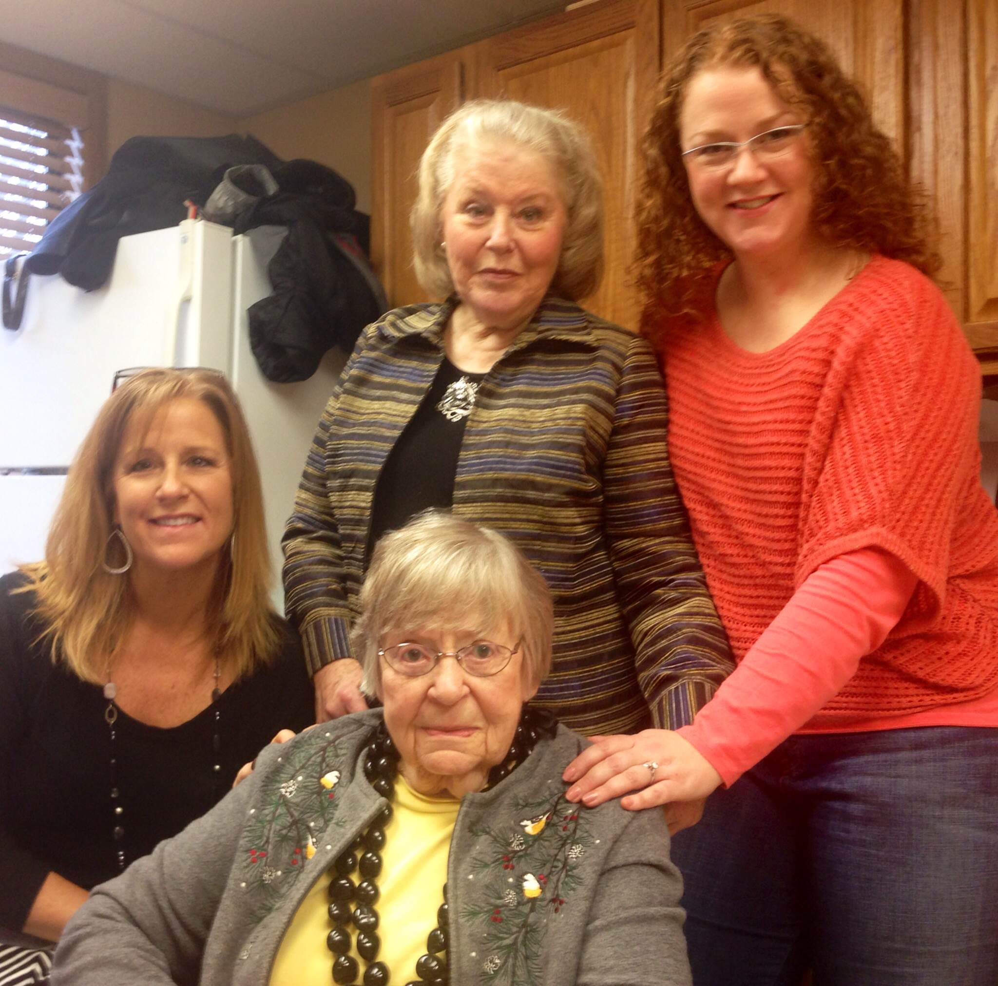 I am forwarding photos I received from Nancy Theilen Ohmann of her Mom’s 100 birthday party and from Marsha Clinard of Marsha, Marilyn Metz and husbands.